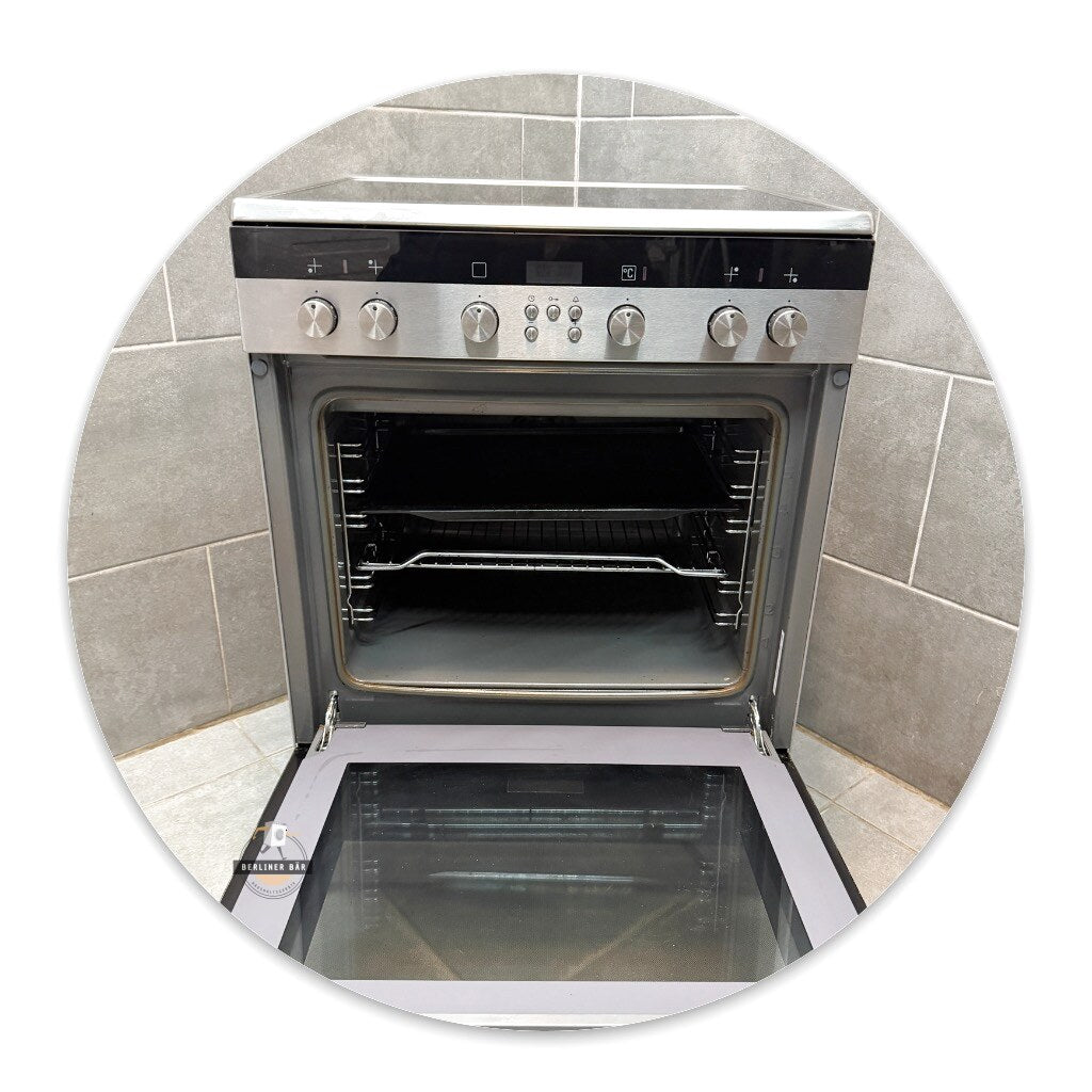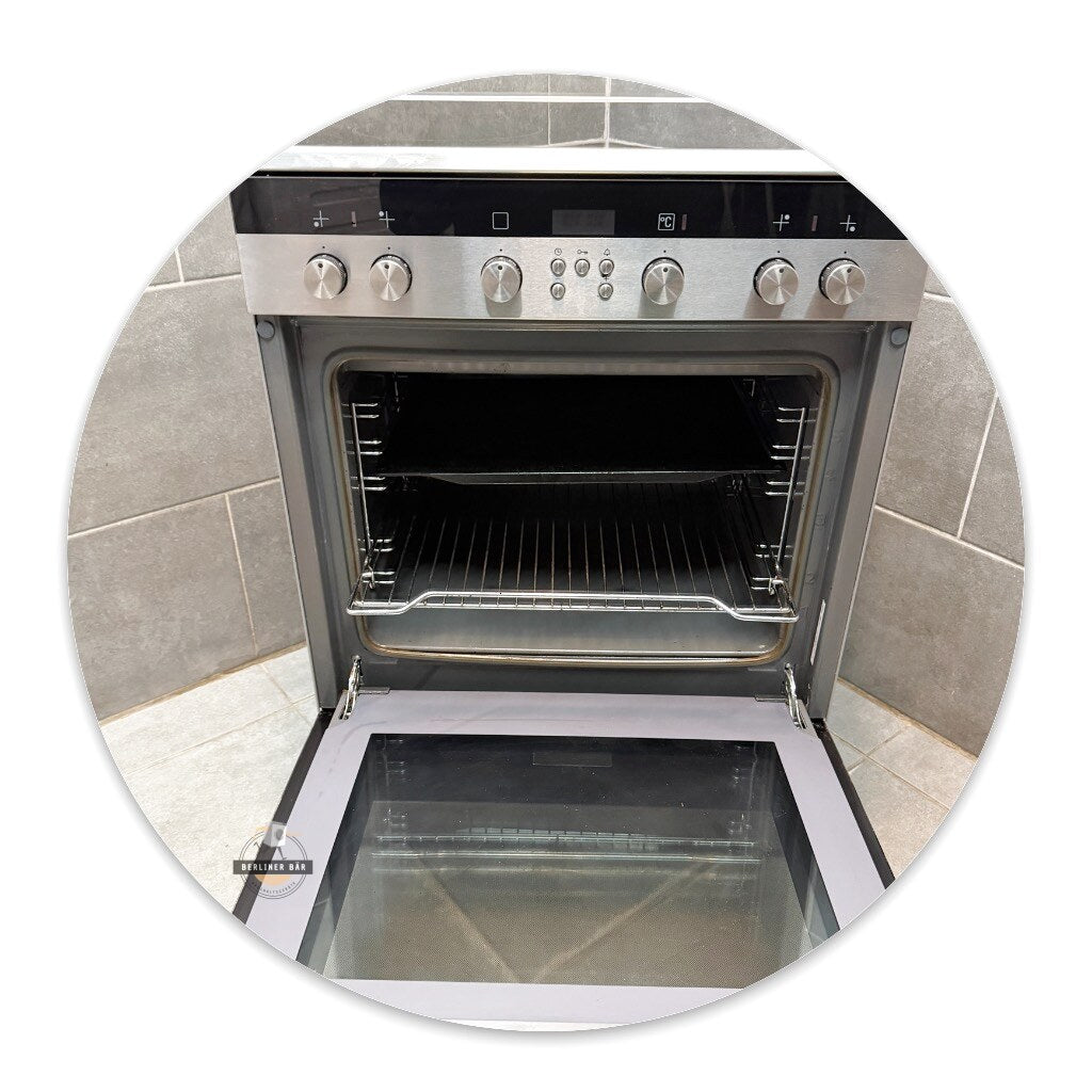 • Reinigungs¬system: Katalyse-Rückwand + Vollglas-Innentür